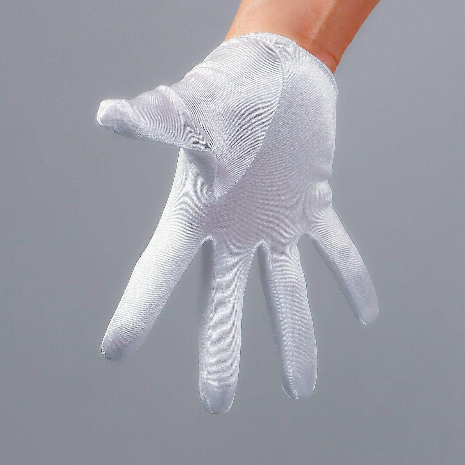 DooWay Extra Short Satin Dress Gloves Sun Protection Stretch for Women Wedding Evening Costume White—
