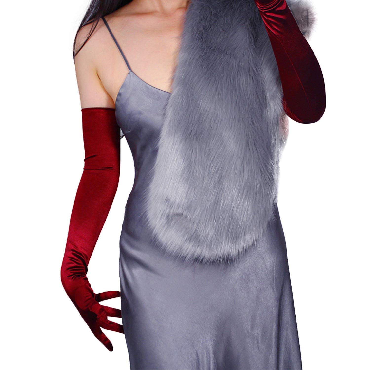 DooWay Long Satin Gloves Silkly Wine Red Ladies Smooth Stretchy Bridal Evening Flapper Opera Gloves