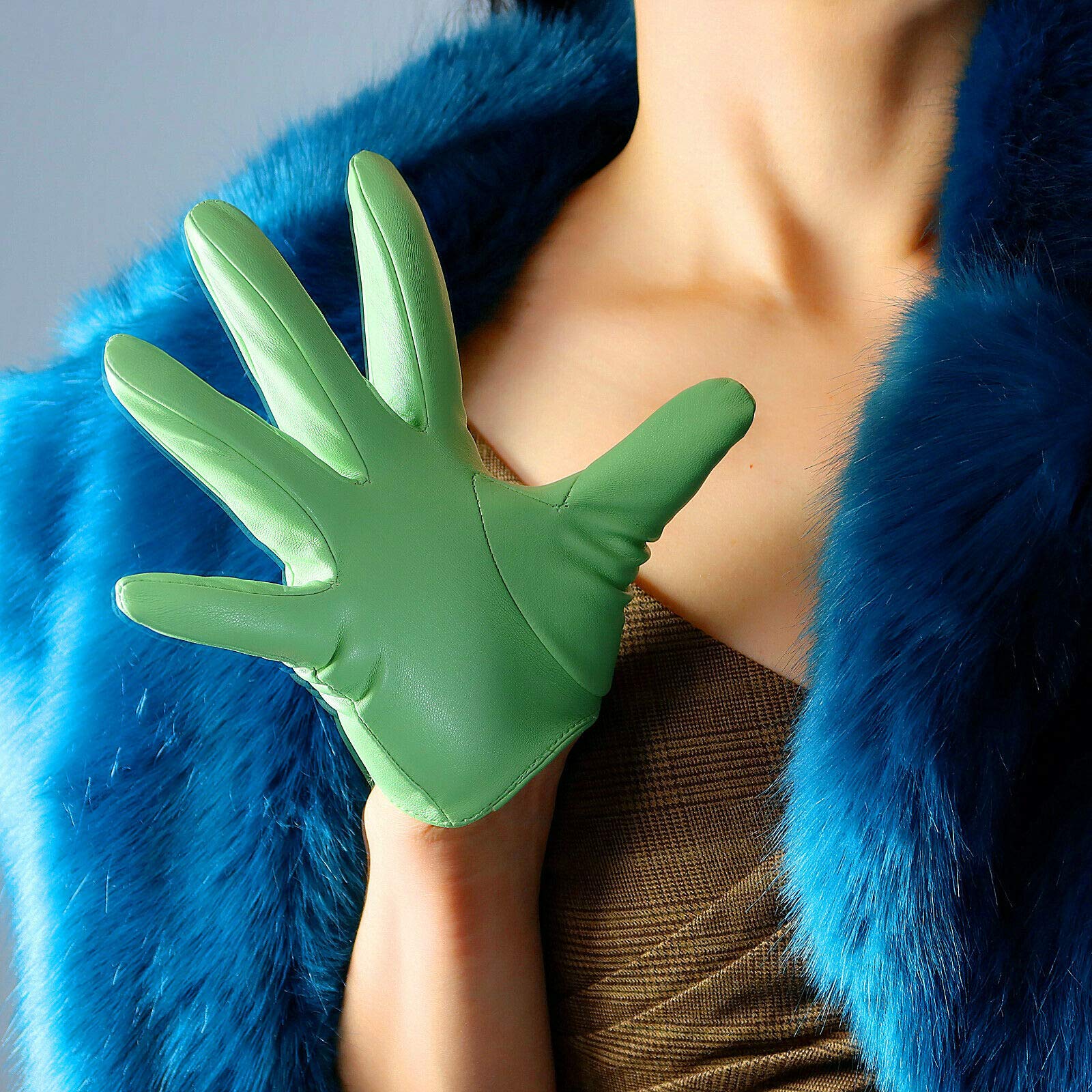 DooWay Winter Short Leather Gloves Faux Lambskin for Spring Outdoor Party Driving Light Green 16cm