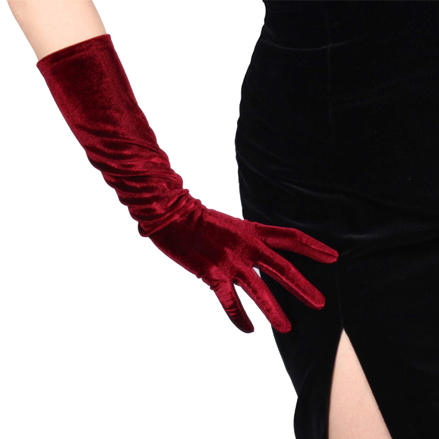 DooWay Women Long Velvet Gloves Stretch Elbow Length 16 Inches for Evening Wedding 1920s Party Costume—