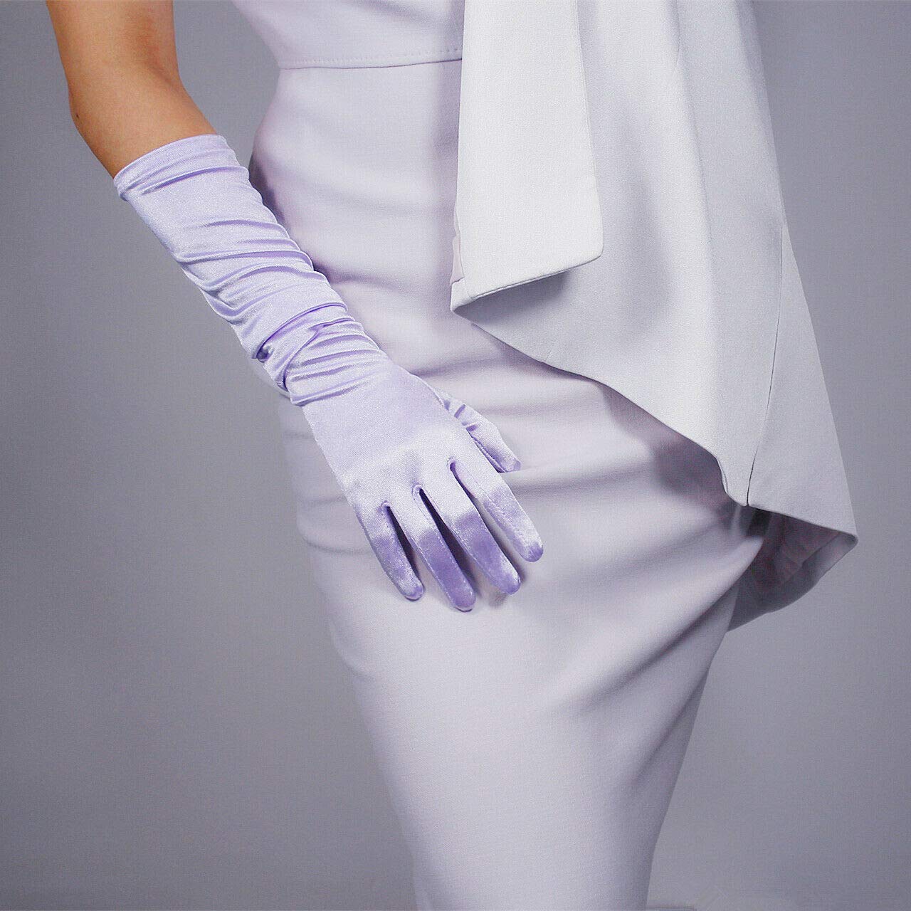 DooWay Women's Fashion Long Satin Dress Gloves Stretch 20 inches for Wedding Opera Prom Evening Party Lavender