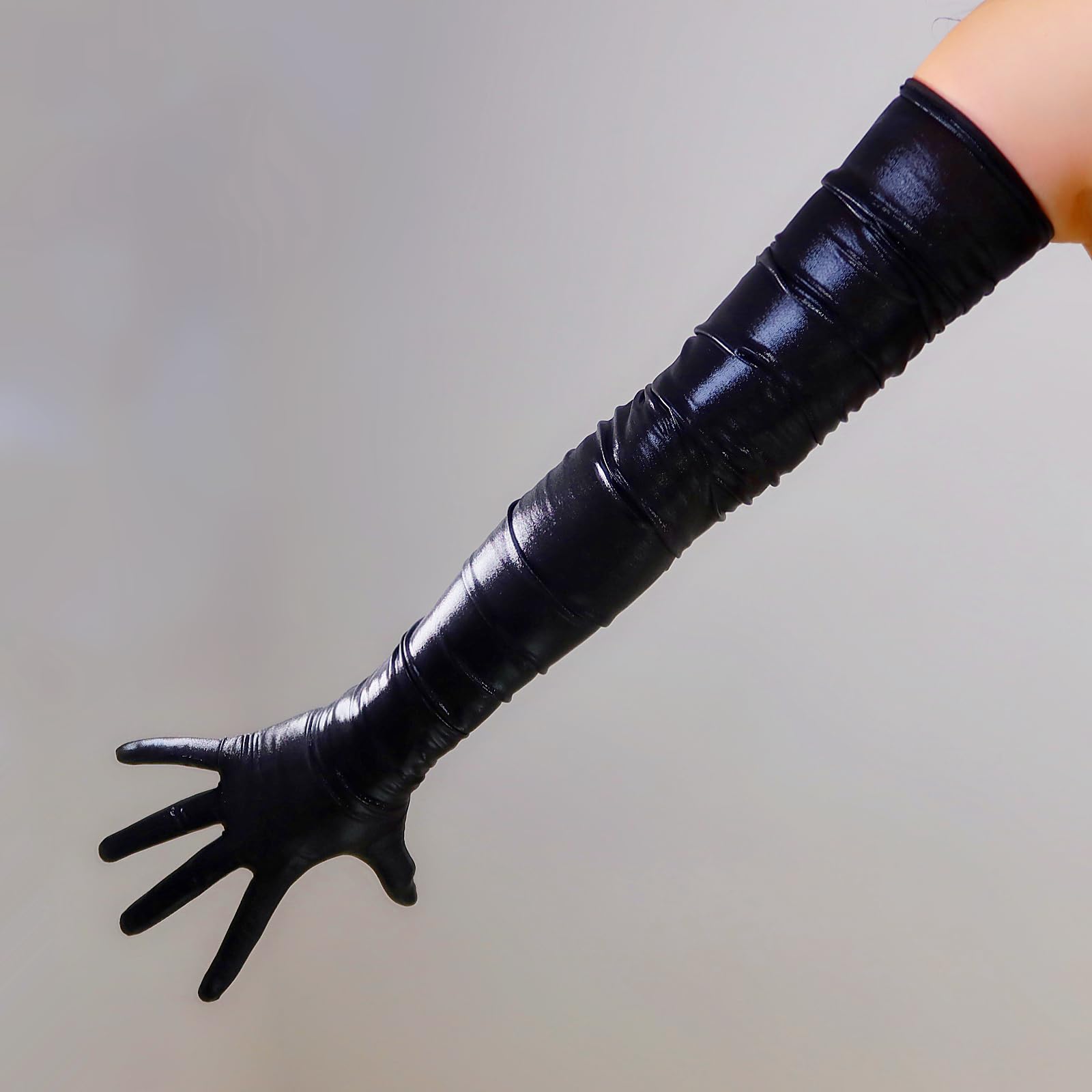 - Long Metallic Gloves with ruched sleeve design,glamour essentials and drama queen designs, Ideal for adding some glamour to your look,allow you to make a statement and stand out from the crowd.